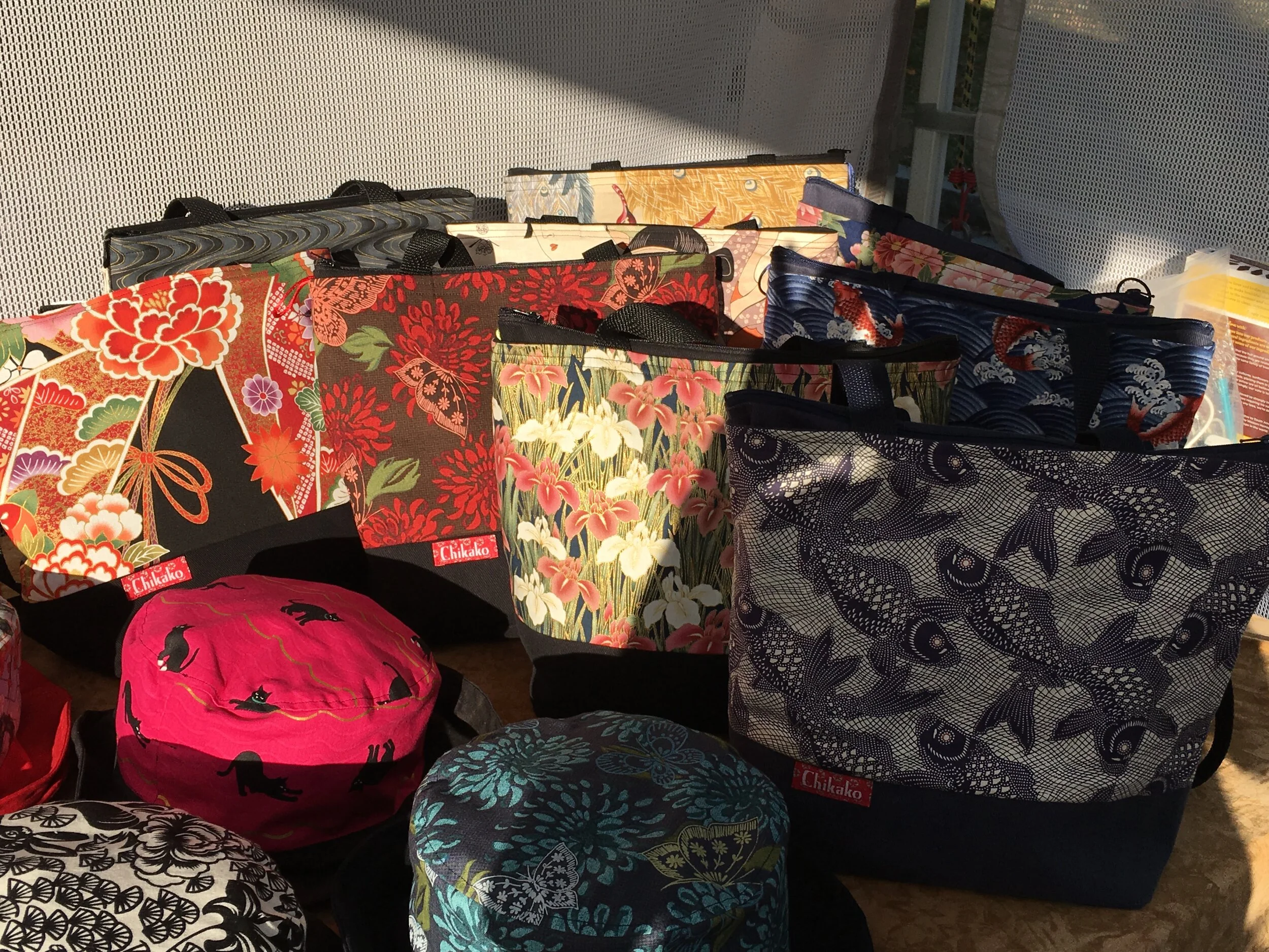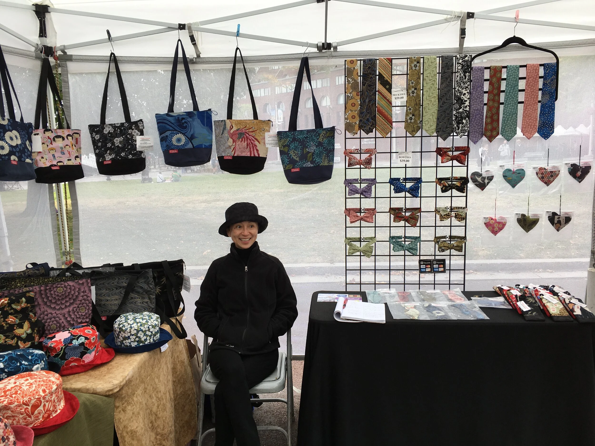 Having been born in Japan, I am forever inspired by the combination of the influences of my Japanese heritage and my western upbringing. I like to call my pieces ‘East that sometimes meets West’. I adore the combination of beautiful Asian prints placed seemingly simply on maybe a solid shape, always keeping in mind the functionality of the piece. After graduating from MassArt with a Fashion Design degree, I worked in New York and then Tokyo before deciding to return here to start my business in 2004. I’ve met so many great people here and really appreciate the support that I’ve received.
